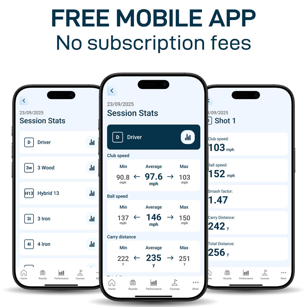- Total & carry distance - instantly measured