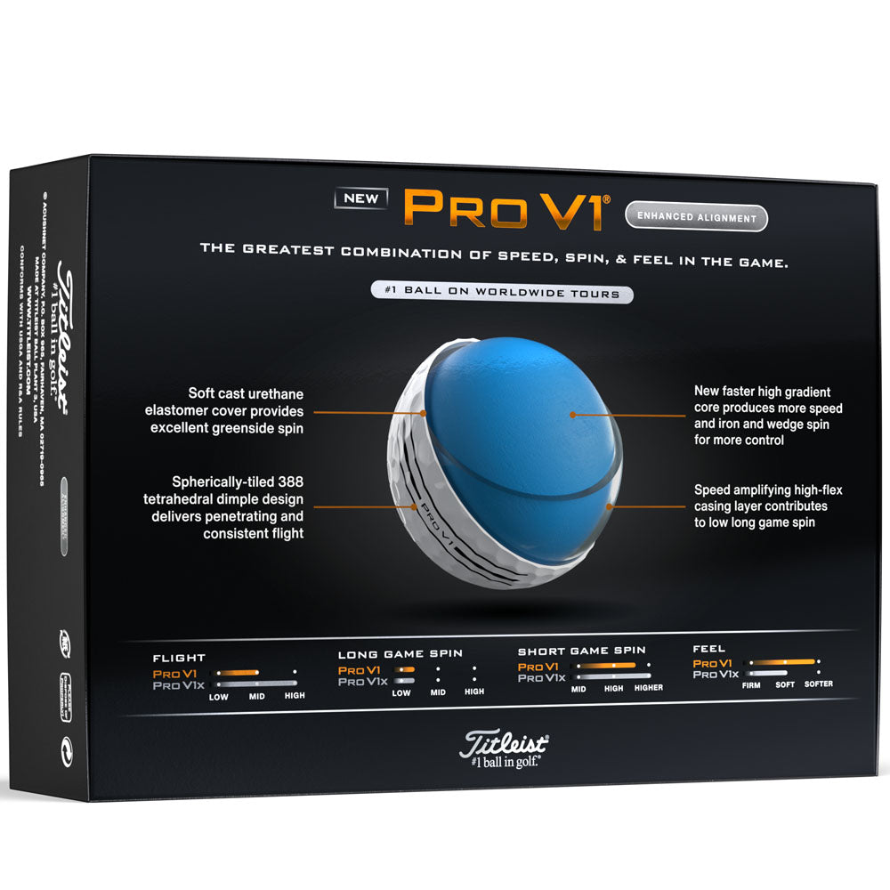 Titleist Pro V1 Enhanced Alignment Golf Balls - White - 12 Pack